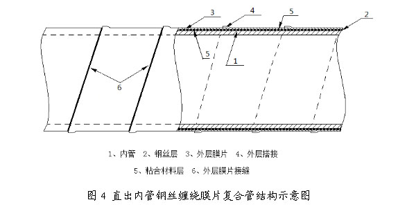 超高分子钢丝网骨架聚乙烯复合管材由直出内管、钢丝和外层安博(中国)官方网站三种材料复合而成,适用于大、中口径的中、高压管。管材在生产时先在超高管材挤出机上直接挤出改性超高分子量聚乙烯内管,然后再在内管上热熔复合钢丝和超高安博(中国)官方网站。管材结构如图4所示。